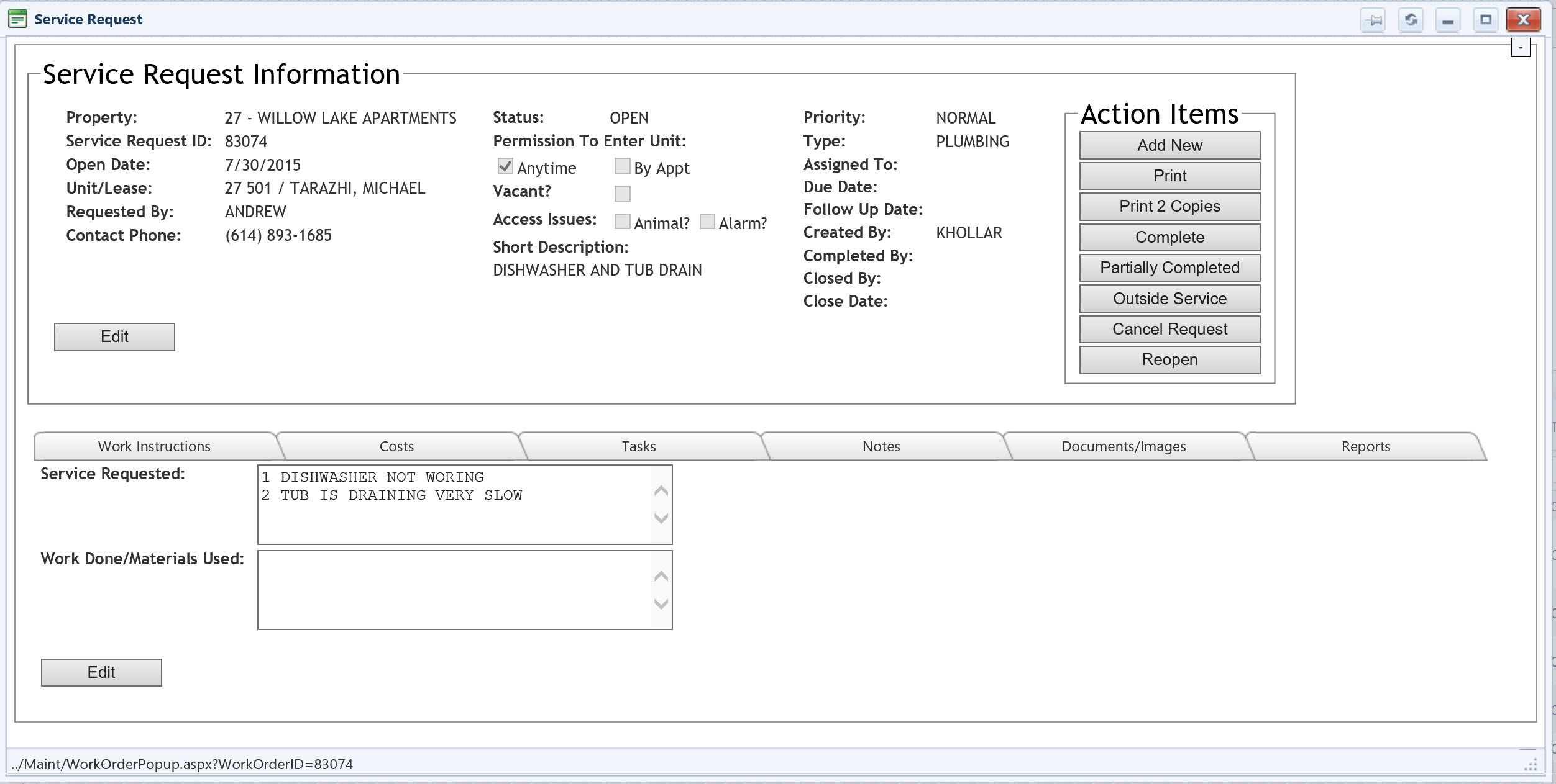 Blue Notch can help your maintenance staff track and prioritize your service requests and help improve and monitor customer service. Service requests can be generated from "Quick Links" anywhere in the system as well as initiated by residents themselves in the resident portal.