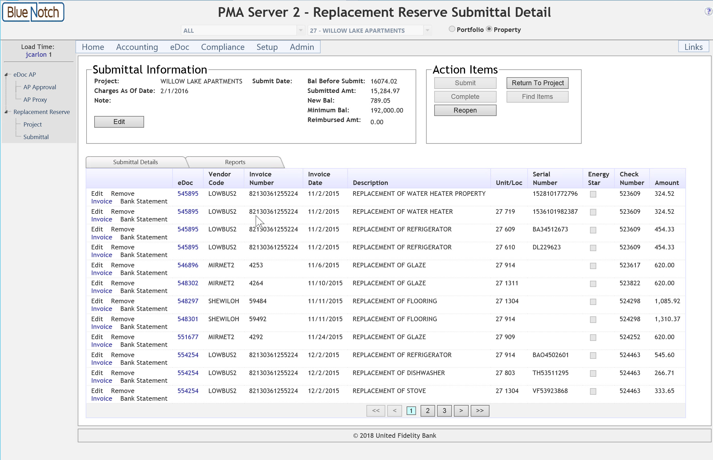 Blue Notch allows you to create and fully track your replacement reserve submissions for properties with replacement reserve requirements.
